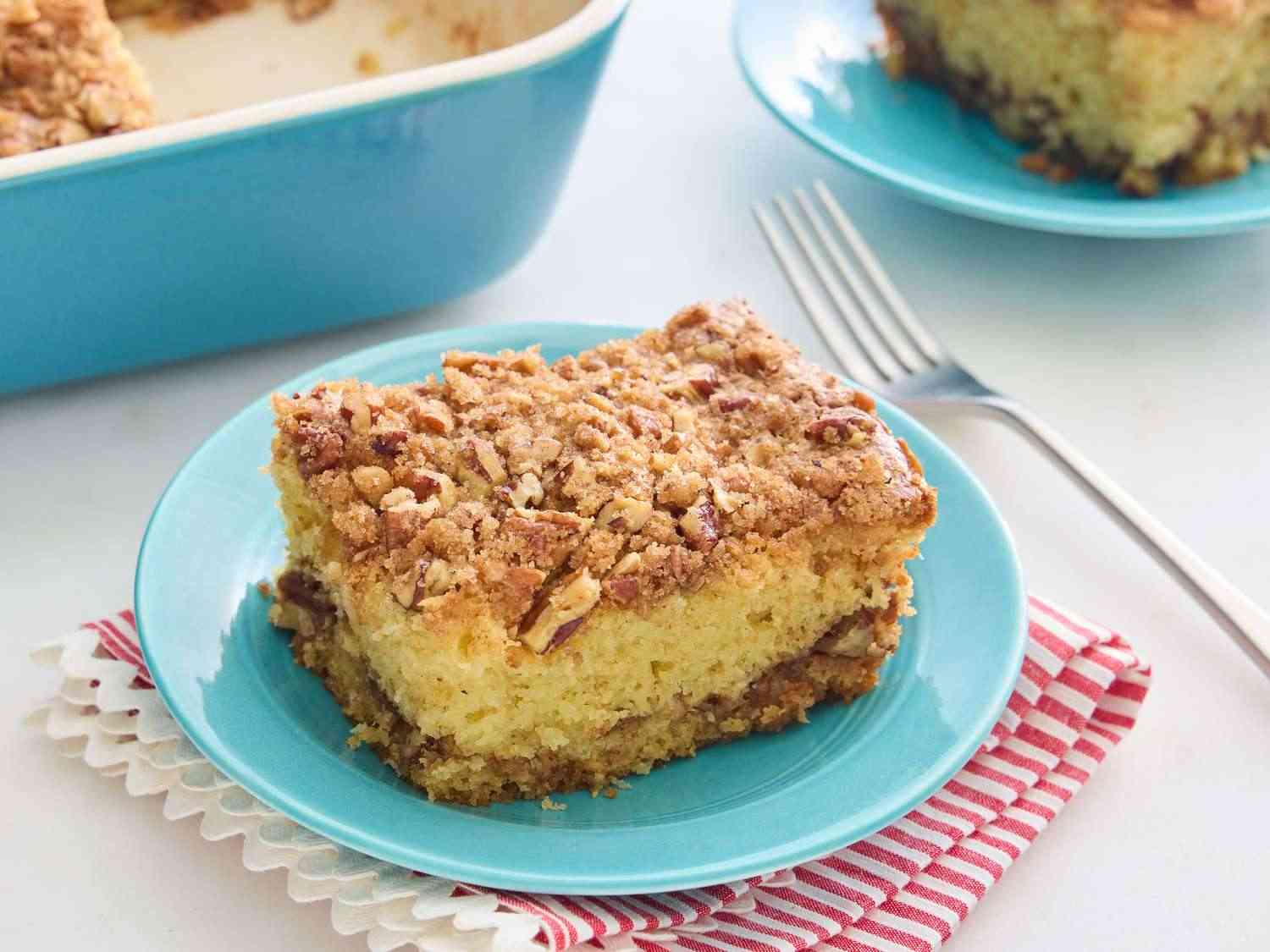 - Step 6:Spread 1/2 of the batter over the bottom of the prepared baking dish, then sprinkle with 1/2 of the topping. Carefully spoon remaining batter over topping, then sprinkle with remaining topping; very gently press topping into batter. Dotdash Meredith Food Studios